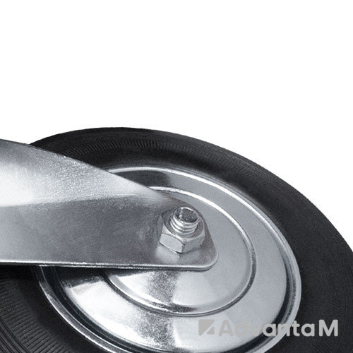 Плавное движение по любому типу поверхности обеспечивает шинка из износостойкой чёрной резины. В оси надёжный роликовый подшипник, в поворотном узле – двухрядный шарикоподшипник с пластиковым пыльником. Размер платформы 135x105 мм, расстояние между центрами отверстий 105x75 мм. Общая высота колесной опоры 235 мм.